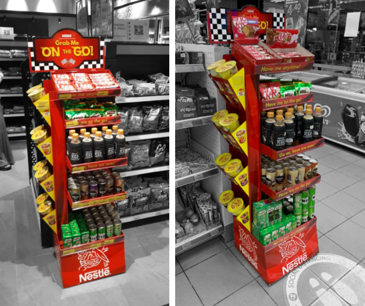 Petrol stations are not about discovery. They are about speed. Out-of-store POSM here must behave like a shortcut: “Grab this now.”