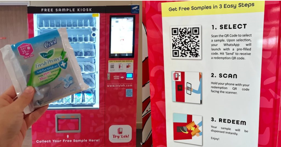Case in point: Singapore startup Try Leh uses vending machines to distribute free samples. Users simply scan a QR code via WhatsApp. No typing, no app, and collect their freebies in-store.