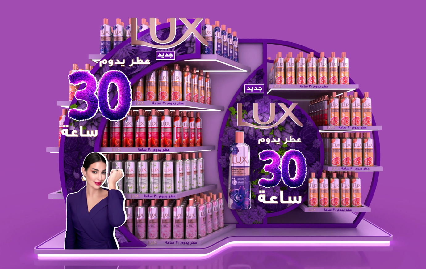 Case in point: A sculptural POSM that uses bold circular framing and clean geometric shelving to signal confidence and premium intent at first glance.